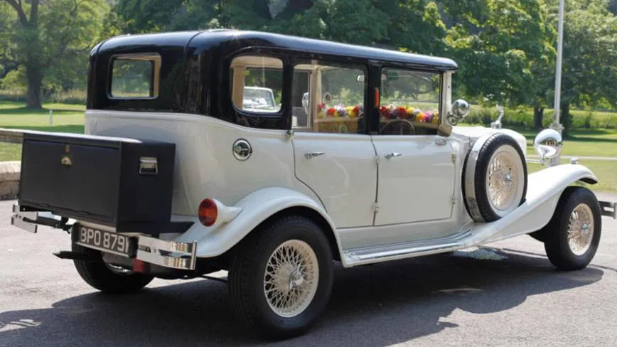 The Beauford is often referred to as the 'Fairy Tale' car in wedding circles but this Beauford is slightly different in that it has a fixed hard top roof. The Vintage style though is the same and based on the 1930's era Duisenberg but without the opening roof. A very elegant looking vehicle and with 4 doors it makes entry and exit easier. In the traditional wedding colour of White this will provide the ideal wedding transport for the happy couple.