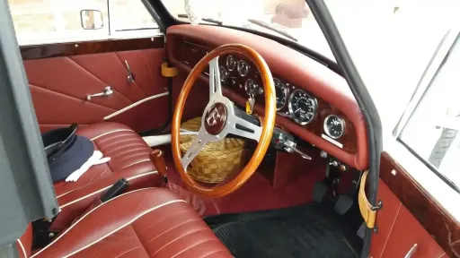 The exterior coachwork is finished in one of the most popular wedding colours of White & Black with the interior in cream leather. Adding that extra touch is the beautiful highly polished burr walnut veneered dashboard which extends along the top of the doors.