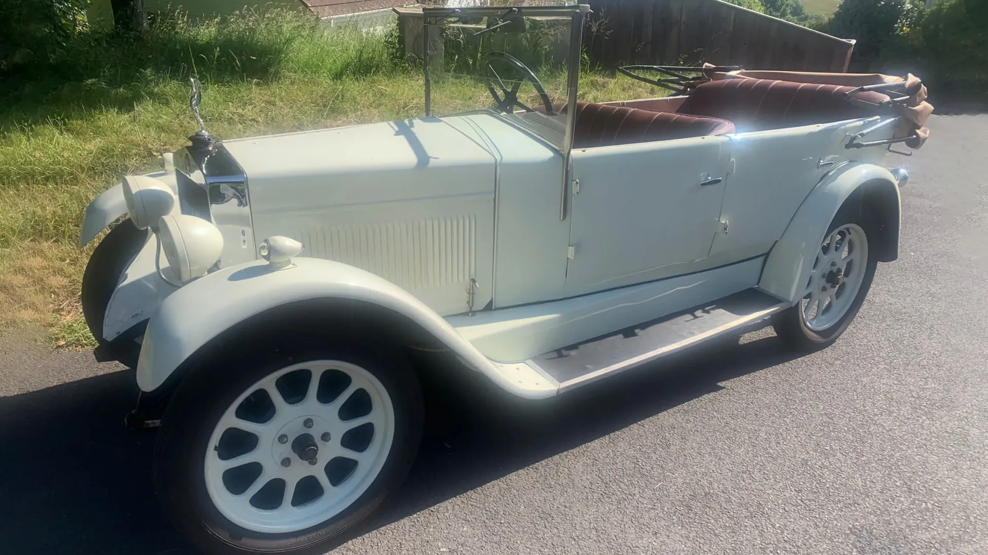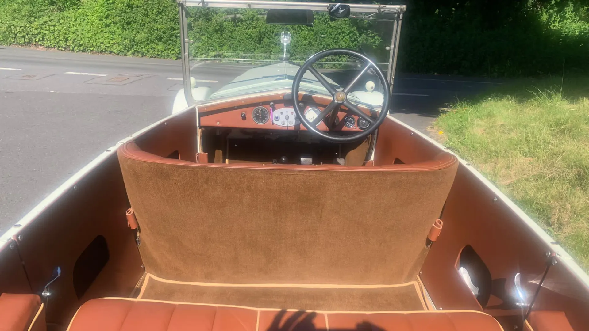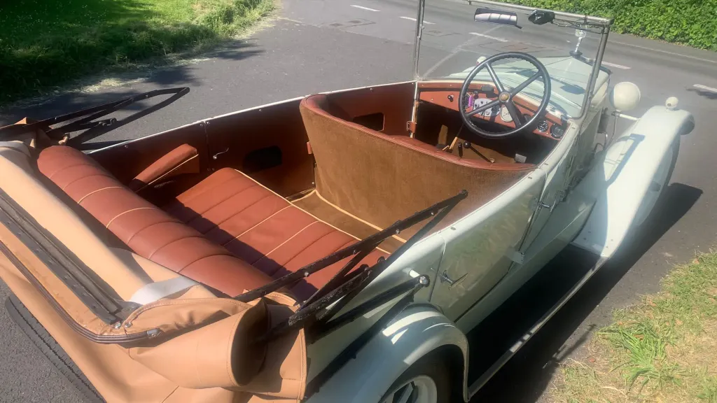 With a 22 horsepower 990cc 4 cylinder engine it will provide you with the experience of travel in the 1920's. This Fiat is in the ideal wedding colour of Olde English White which is the softer white similar to Ivory and has a warming Tan leather interior, as the vehicle is an open tourer side windows are not fitted but the roof can be either up or down at your request as shown in the photos, simply advise your chauffeur on the day how you wish to travel.