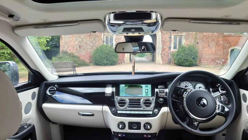 The stunning Rolls-Royce Ghost is without doubt one of the worlds most luxurious motor cars. In the traditional wedding colour of White with a beautiful cream leather interior enhanced by highly polished Burr Walnut veneers this car is simply the best, and a firm favourite for happy couples that require a taste of true luxury on their wedding day. The Ghost has a full length panoramic glass sunroof, electric reclining seats front and rear, forward opening rear doors for a graceful entry and exit, and just in case you forget which car you are travelling in all headrests have the RR emblem, and of course no luxury car would be complete without picnic tables and DVD/TV screens. The near silent engine simply glides you along to your ceremony in calm and peaceful serenity. The Rolls-Royce Ghost is The Wedding Car to top them all.