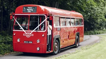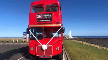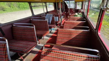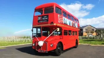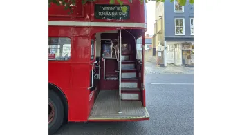 This classic wedding bus is available to hire in East Sussex and surrounding areas. It can seat up to 72 passengers using both lower and upper decks. To preserve the authenticity, no drinks or food are allowed to be consumned on board.