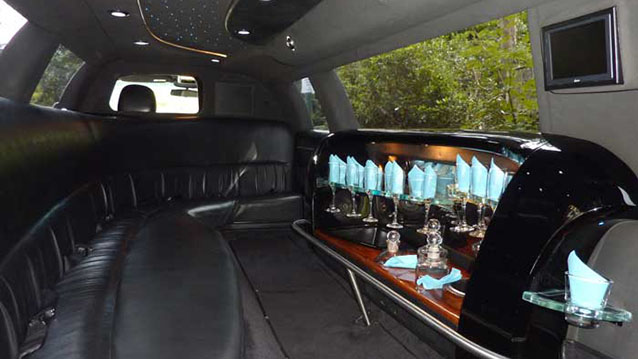 The interior of this later model Lincoln is upholstered with sumptuous soft grey leather seating. Tinted windows allow you to see outside while providing a degree of privacy inside. Lighting is provided by neon mood lights. The mirrored bar area contains multi-coloured fibre optic lights, and the luxury interior would not be complete without Two Televisions, DVD Player, Stereo Radio and CD system. The limousine is also fitted with independently controlled rear Air Conditioning with Climate Control, Electric Windows, Twin Ice Compartments, Champagne Flutes, Tumblers and Crystal Decanters.