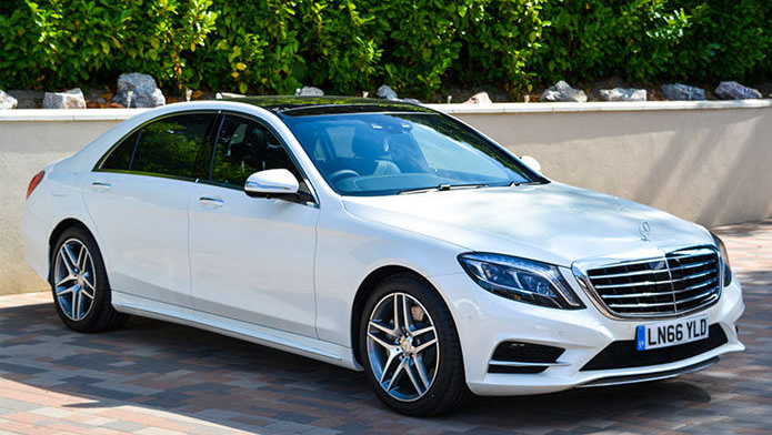 The Mercedes 'S' Class is the pinnacle of luxury within the Mercedes wedding car range. It boasts a lavish, full leather interior for a comfortable and smooth ride on your big day.