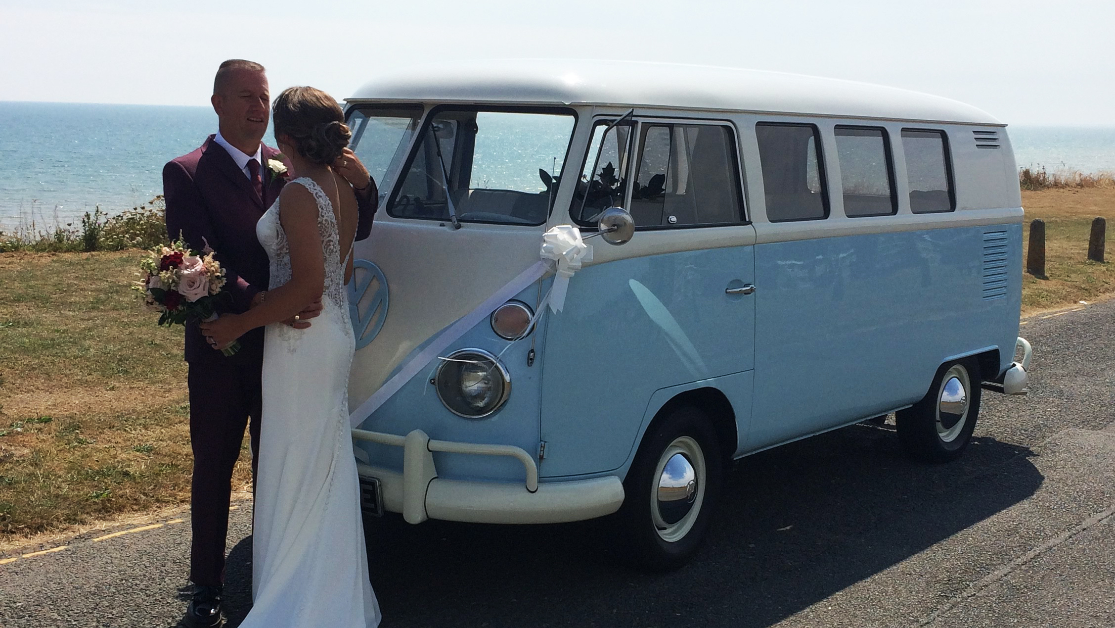Wow - Dave was amazing!!! I hired a beautiful blue and white VW camper to take me and my bridesmaids to the wedding venue and it did not disappoint. For a start, the camper was stunning and Dave had decorated it with ribbon and flowers, I couldn’t have pictured it better. Truly beautiful. Dave was also kind enough to stop on the way to the venue so we could grab a bottle of Prosecco which he also kindly popped for us and we had beautiful wine glasses in the back so we could all enjoy a little drink on our way.