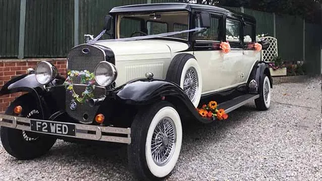 Finished in black and ivory with vintage detailing, side-mounted spare wheels and gleaming chrome accents, this beautiful car effortlessly captures the romance of a bygone era. It’s a wedding car that not only transports you, but becomes a memorable part of your day and your photos.